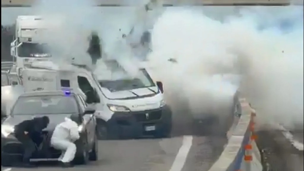 Un comando armado atacó un camión de caudales con explosiones y disparos en una ruta del sur italiano. Las impactantes imágenes se viralizaron y causaron conmoción.